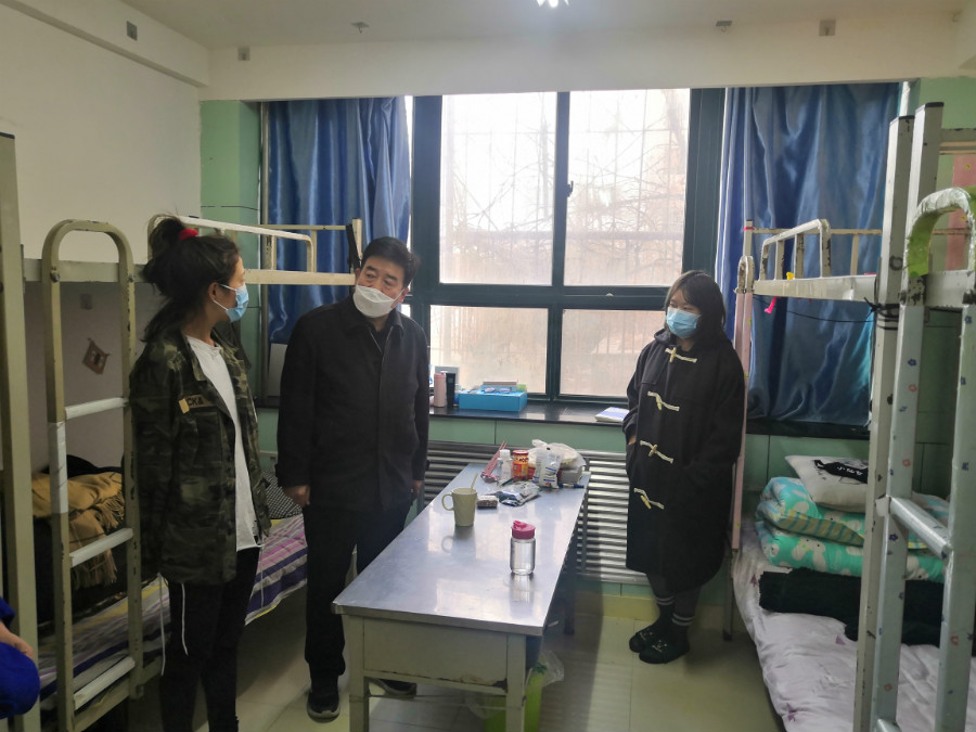 2月11日中午,学校党委书记姜德民、校长任晖、副校长康逢民等校领导深入一线检查指导新型冠状病毒感染的肺炎疫情防控工作。