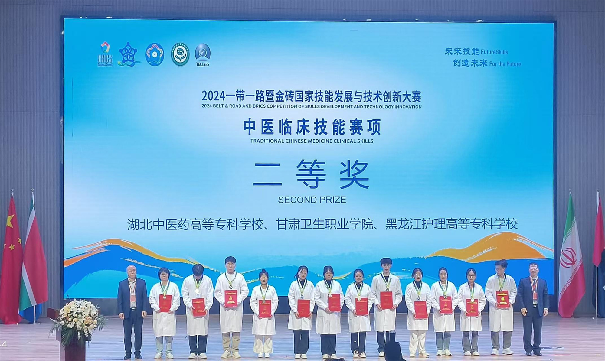 11月8日至10日,在安徽芜湖举行的“2024一带一路暨金砖国家技能发展与技术创新大赛”中医临床技能赛项中,学校中医学院选派的张靖、毛茜雅、王轹文、康化彤四位学生,凭借扎实的专业技能和出色的临场发挥,荣获大赛二等奖,学校获得优秀组织奖,四位指导老师荣获优秀指导教师。