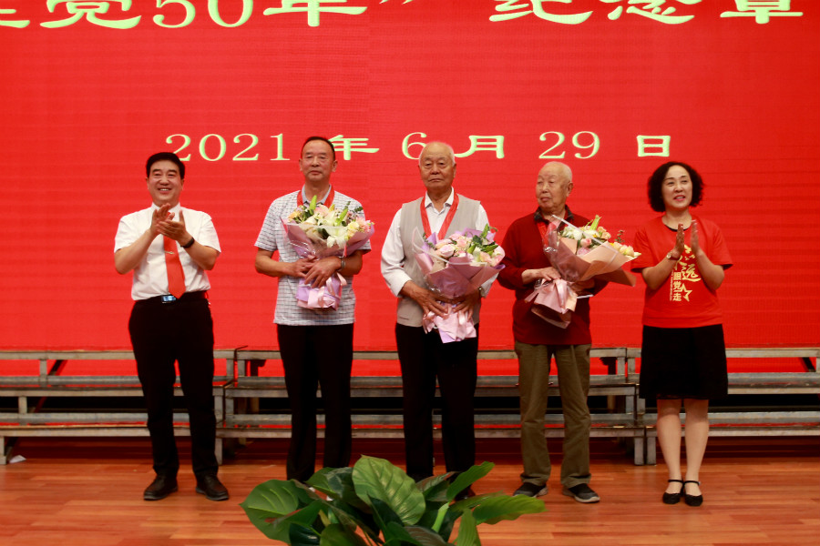 比赛后,学校为胡玉生校长、李星明书记、吴再衡校长颁发“光荣在党50年”纪念章,这既是对伟大的中国共产党建党100周年的热烈庆祝,也是对老党员的一次集体致敬和最高礼赞。同时,校领导为2020-2021学年先进基层党组织、优秀共产党员和优秀党务工作者颁发了荣誉证书。