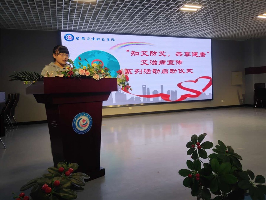 根据甘肃省疾病预防控制中心发布的2020年高等院校艾滋病健康教育项目实施方案,为继续强化学院艾滋病防控教育,全面普及艾滋病防治知识,11月5日,在学院临床医学系报告厅举办“知艾防艾,共享健康”艾滋病健康教育系列活动启动仪式。学院附属医院老师、天使爱心社全体成员及学院学生会代表参加了活动。活动由附属医院罗蕊主持。
