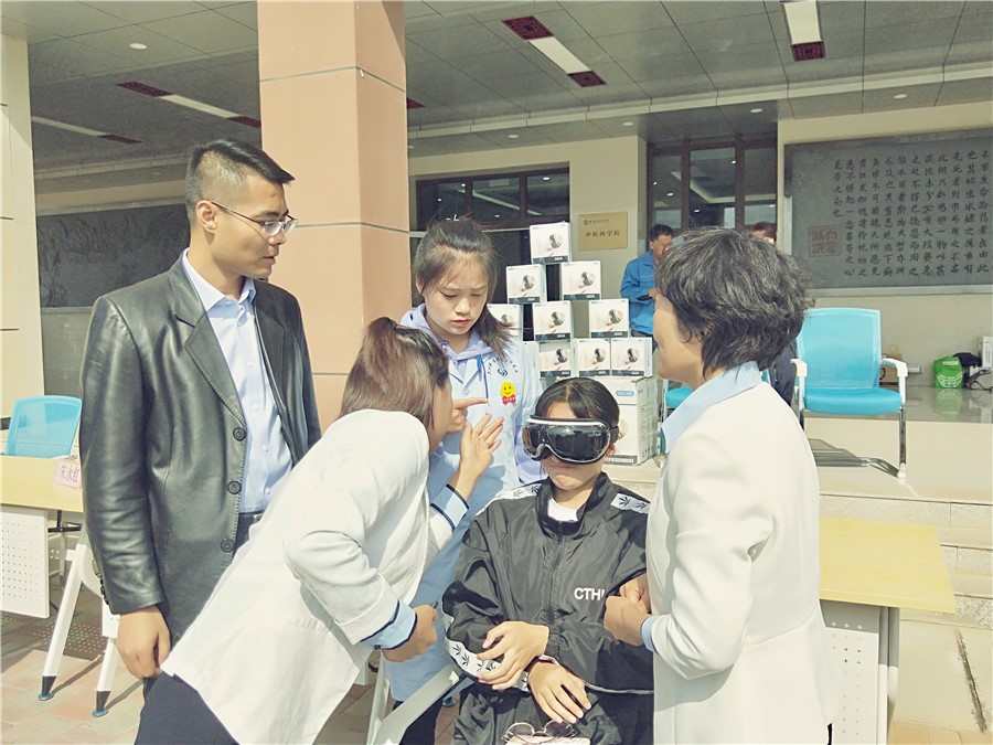 活动现场,远大医药工作人员为师生免费发放了2000余盒聚乙烯醇滴眼液,贝立凯公司工作人员指导学生体验了护眼仪。针对师生经常出现的眼科问题,中医药学院副院长田卫东亲自教授学生如何正确使用滴眼液,各位工作人员还宣传讲解了科学的爱眼、护眼知识,使学生科学的保护眼睛健康。