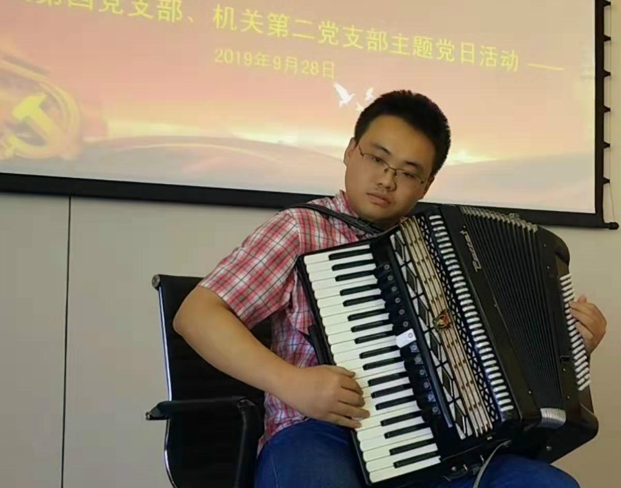 随后,第四党支部郭欣宜手风琴独奏《土耳其进行曲》和《花儿与少年》、诗朗诵《像小草歌唱大地一样》,第二党支部合唱《今天是你的生日》、诗朗诵《我的南方和北方》,共同表达他们对祖国母亲的祝福,也赢得了在场党员们广泛赞誉。