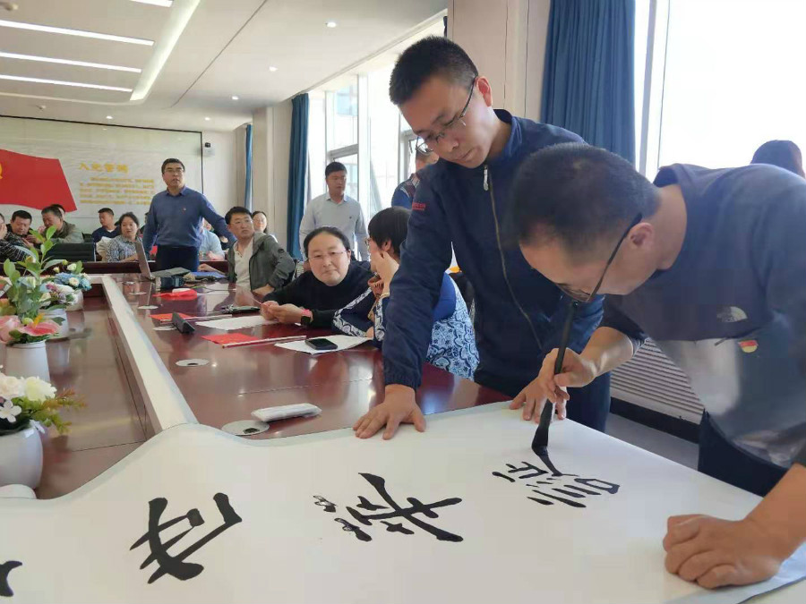 活动现场,在高雅动听的古筝乐曲伴奏下,第四党支部高博、顾强、李贵勇、李永启发挥个人书法爱好,现场展示书法作品创作,他们的作品主题突出,风格各异,精彩纷呈,翰墨流香,用手中的笔和心中的情,挥毫逸兴,抒发心中对祖国的热爱,向新中国70华诞献礼。