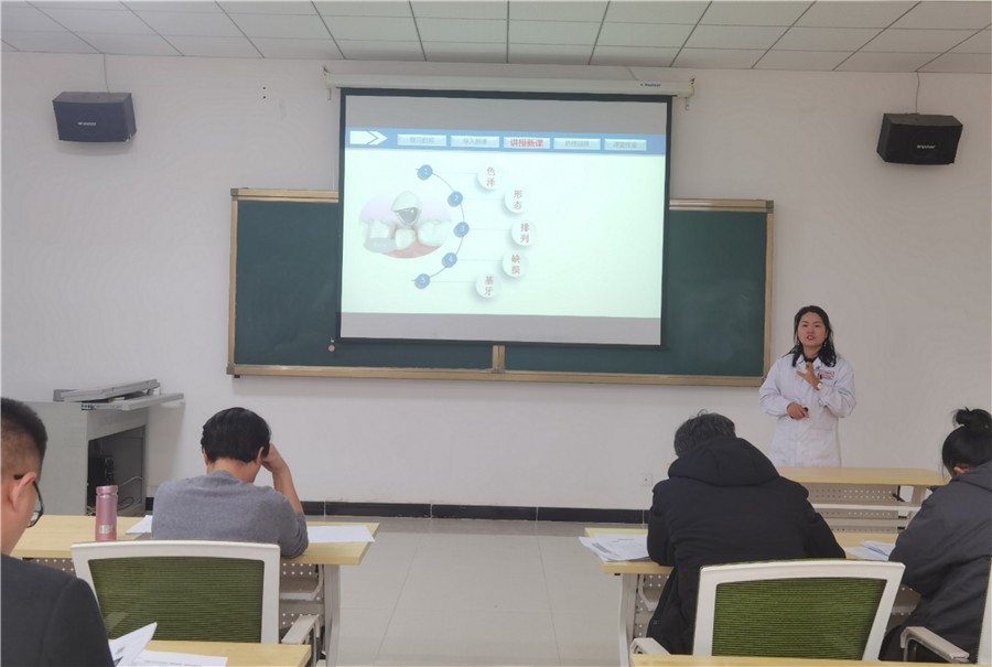 为了认真贯彻落实《天游8线路检测中心关于举办“课程思政”课堂教学比赛暨 2020 年教学优秀奖评选活动的通知》(甘卫院函〔2020〕96 号)精神,全面了解参赛教师的准备情况,帮助教师发现问题,同时为参加校赛做好选拔推荐工作,11月29日下午,医学技术学院口腔教研室在学院会议室组织开展了“课程思政课堂教学比赛”初赛选拔推荐活动。医学技术学院口腔教研室共有4名教师报名参加了此次比赛,活动特别邀请医学基础医学院鲁兴梅副教授作为点评嘉宾,学院资深教师作为评委,口腔教研室全体教师参加,活动由副院长蒲小猛主持。