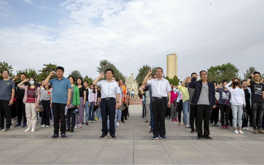 第二天一大早,学院全体党员参观中国工农红军西路军纪念馆,向西路军革命烈士敬献花篮,深深地三鞠躬,缅怀先烈;党员面对鲜红的党旗,重温入党誓词,随后,姜德民书记在中国工农红军西路军纪念碑下讲授党课。