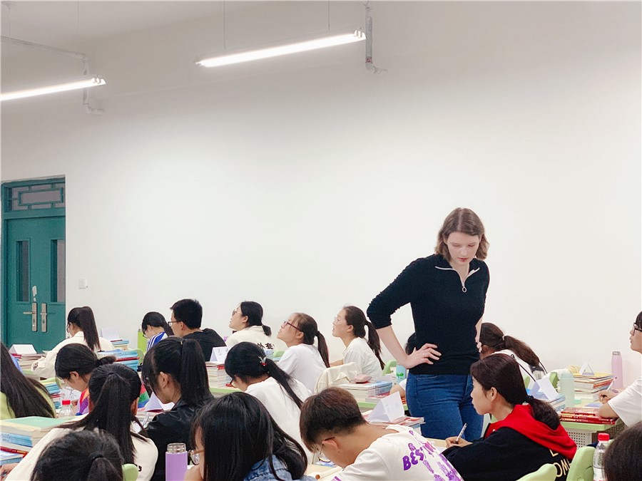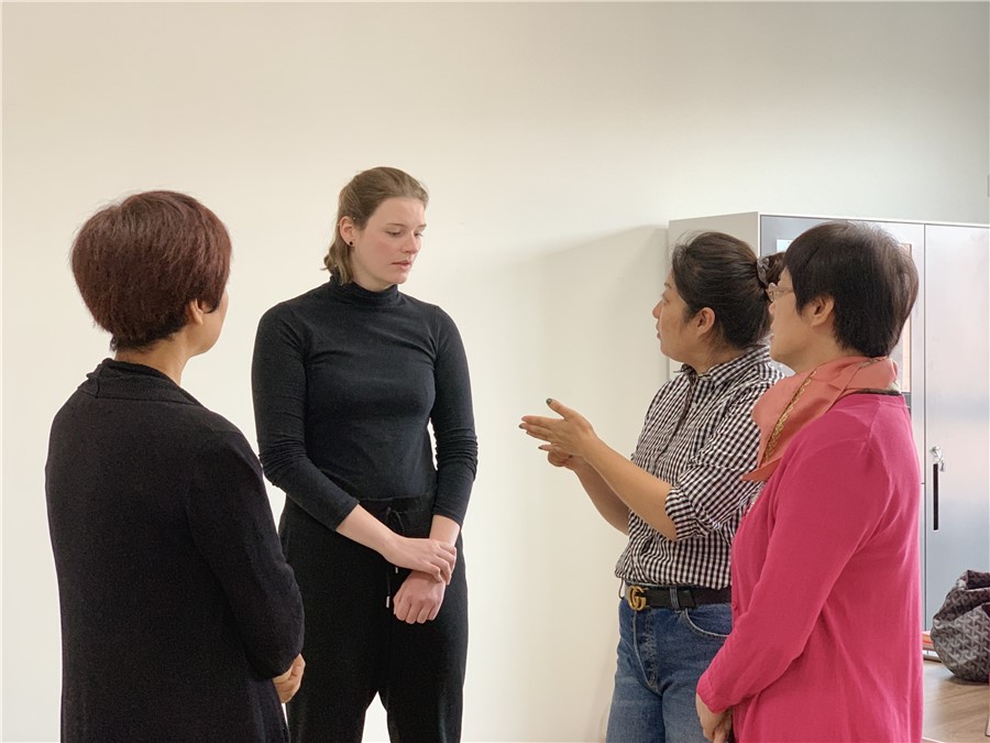 10月11日,爱德基金会教育和国际交流部主任陈程来学校考察,在学校国际交流中心负责人及工作人员的陪同下实地查看了Melina Sasse的工作及生活环境,并深入课堂观摩了公开课,全方位了解Melina Sasse在学校的工作、学习和生活情况。