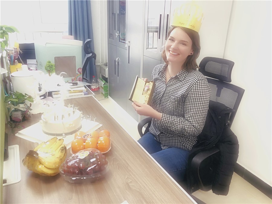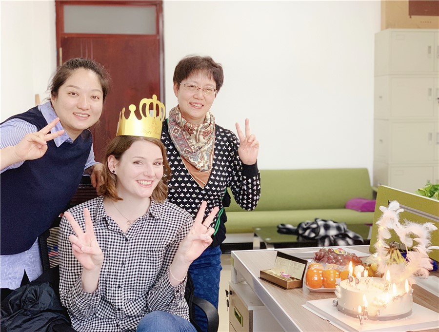 9月9日,Melina Sasse在2018级护理三年制39班正式授课,学生们第一次见到外籍教师倍感兴奋,尽管语言不通,但外籍教师丰富的肢体语言、和蔼可亲的笑容、生动有趣的教学,使学生们很快融入她的教学之中。授课结束后,学生们都对这位“洋教师”颇为喜爱,纷纷主动上前问好并赠礼。10月9日,国际交流中心主任周丽凤及工作人员为Melina Sasse祝福生日,使Melina Sasse感受到了卫职院人的热情和亲如一家的温暖。
