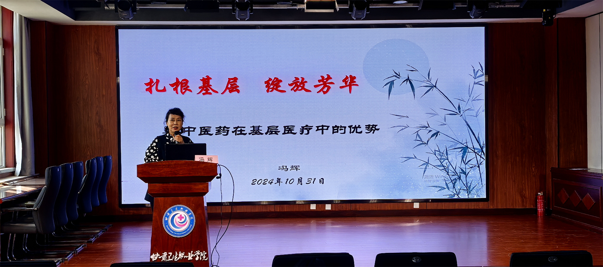 为加强中医类专业学生的职业认同,帮助其尽早做好职业规划,10月31日,中医学院特邀甘肃省基层卫生协会副会长兼秘书长、国家基本公共卫生服务项目现场考核组专家冯辉主任为中医学院的学生带来了一场别开生面的职业认知讲座。中医学院班子成员、全体辅导员以及学生代表200余人参加讲座。