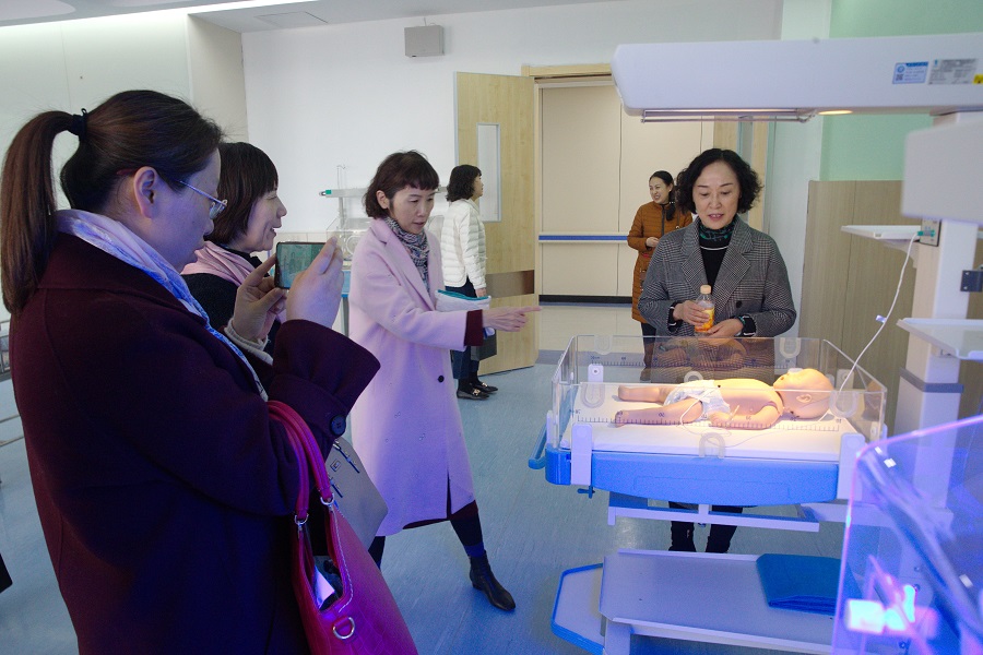 在学校党委书记姜德民,校长任晖,副校长康逢民、高博、毕效武、张军荣等校领导的陪同下,省教育厅机关领导一行参观了学校校园环境、信息中心、大学生心理健康教育中心和临床护理实验实训基地等场所。学校各部门精心安排,热情服务,全方位展示了天游官网在智慧校园、实验实训室建设等方面的成就。省教育厅机关领导和厅机关女干部对天游官网校园文化建设、学生精神面貌等方面给予了一致好评。