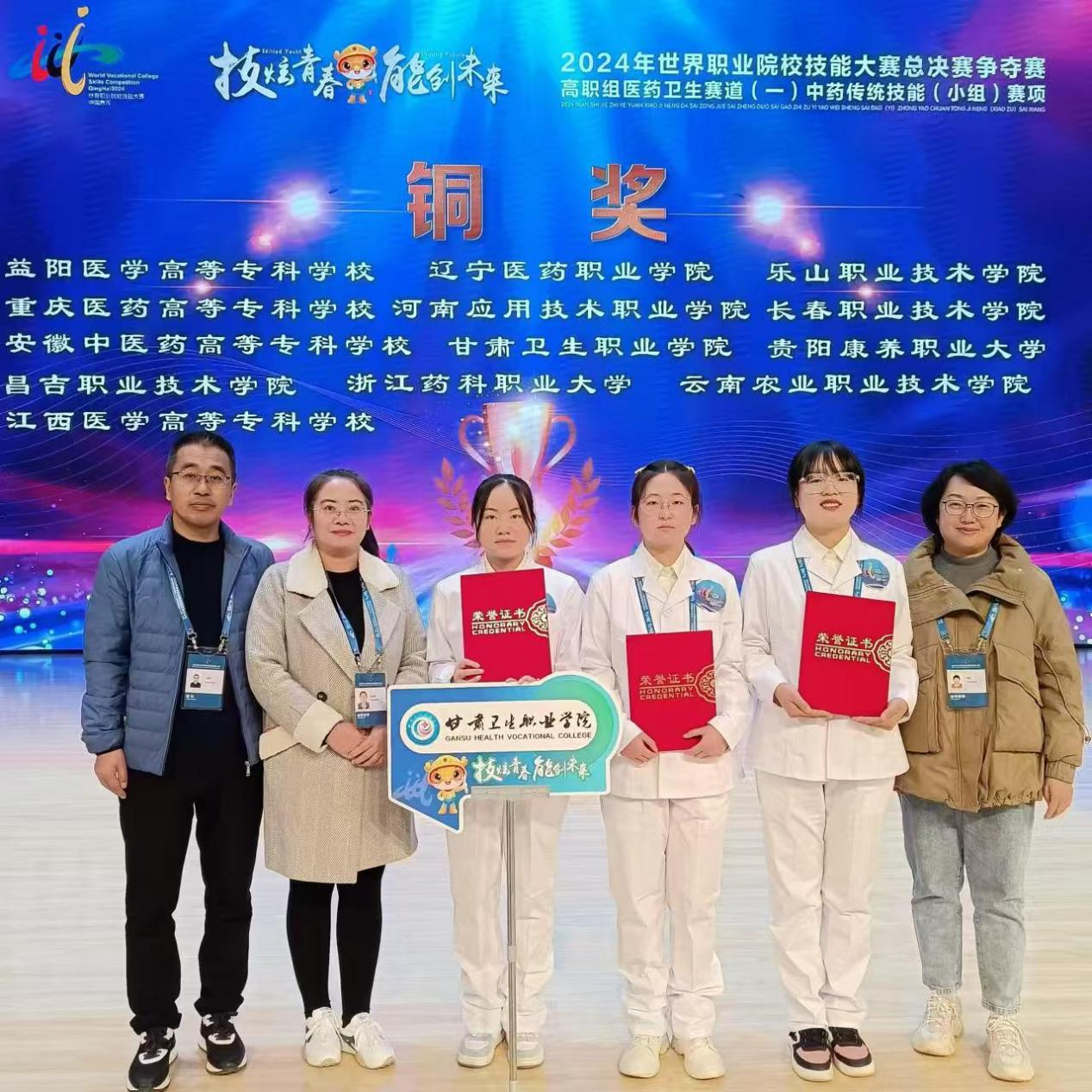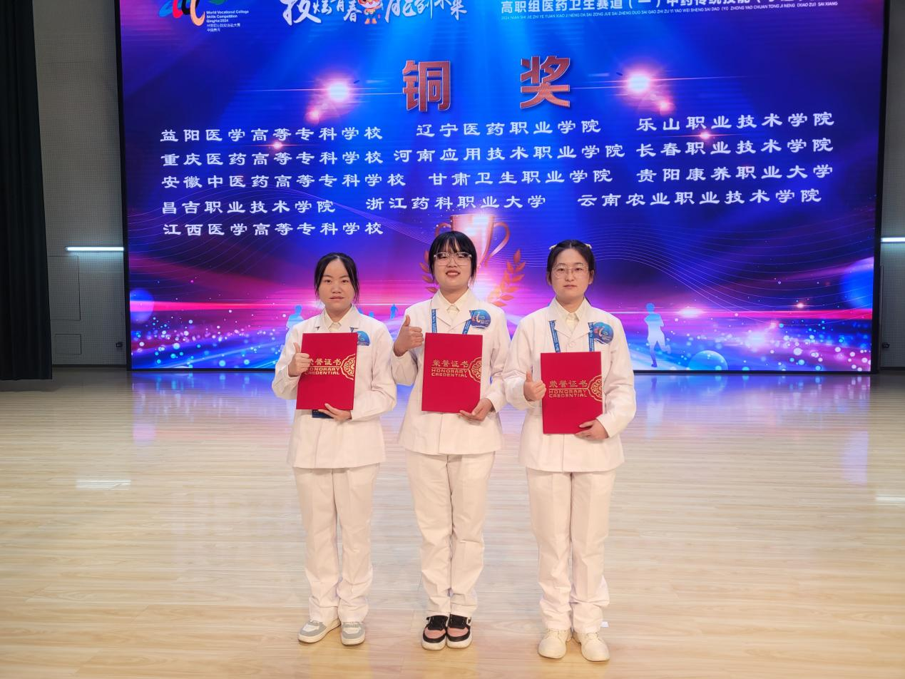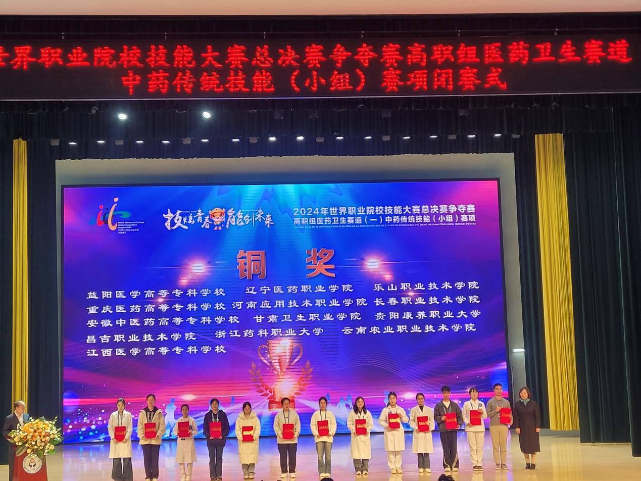 10月28日至11月1日,2024年世界职业院校技能大赛总决赛医药卫生赛道一(中药传统技能赛项)争夺赛在青海卫生职业技术学院成功举办。来自全国各地的55支优秀参赛队,共190名参赛选手同台竞技。天游官网药学院选派由陈方圆、宋爽老师指导的丁芳、贾敏、肖晓童团队参赛,以平行组第3名的成绩荣获铜奖。