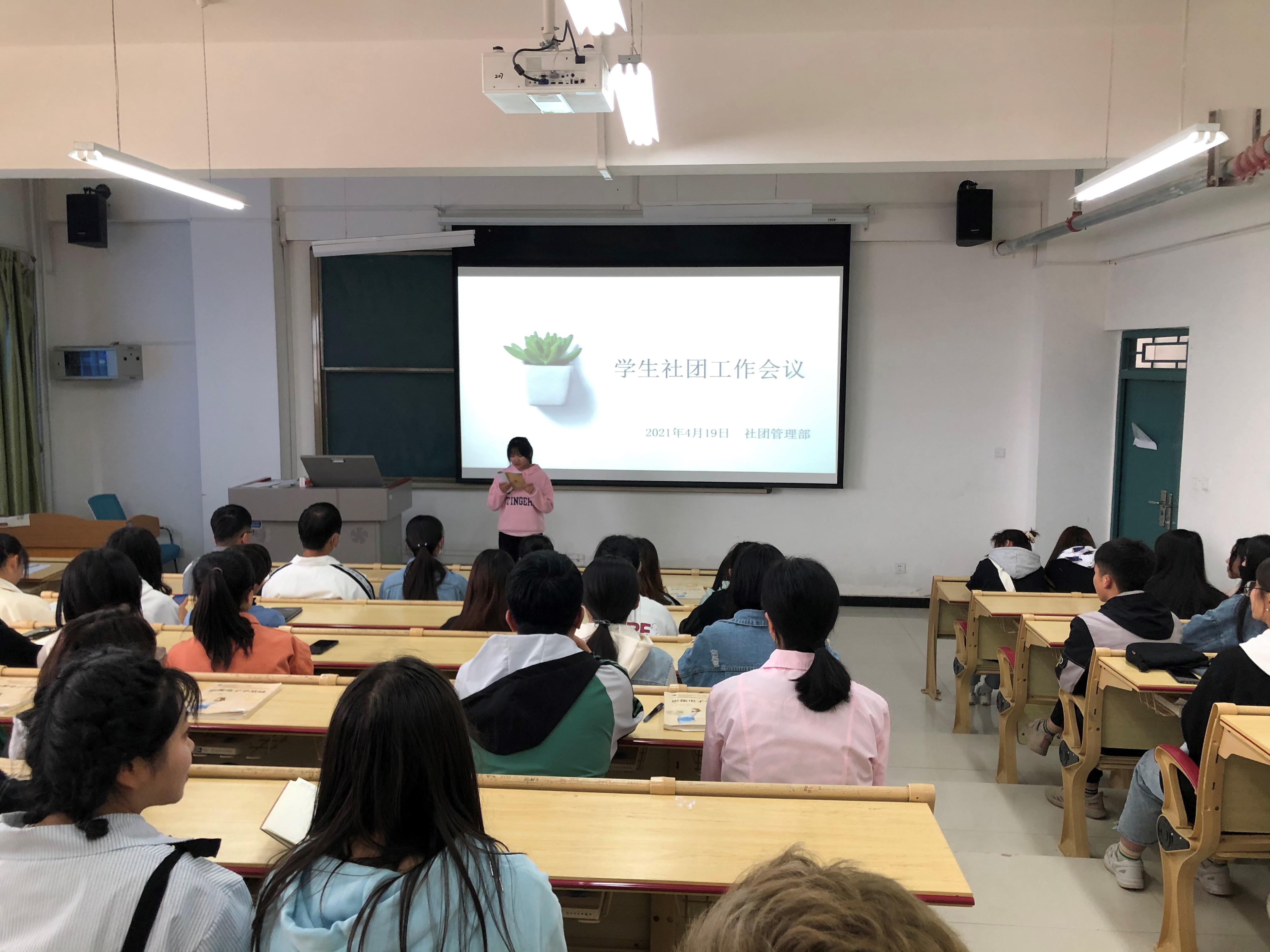 4月19日下午,校团委在三号教学楼207阶梯教室组织召开学生社团工作会议。社团管理部门、各社团负责人及学生代表近100人参加。团委书记衡冰出席会议并讲话,会议由社团管理部长陈文林主持。