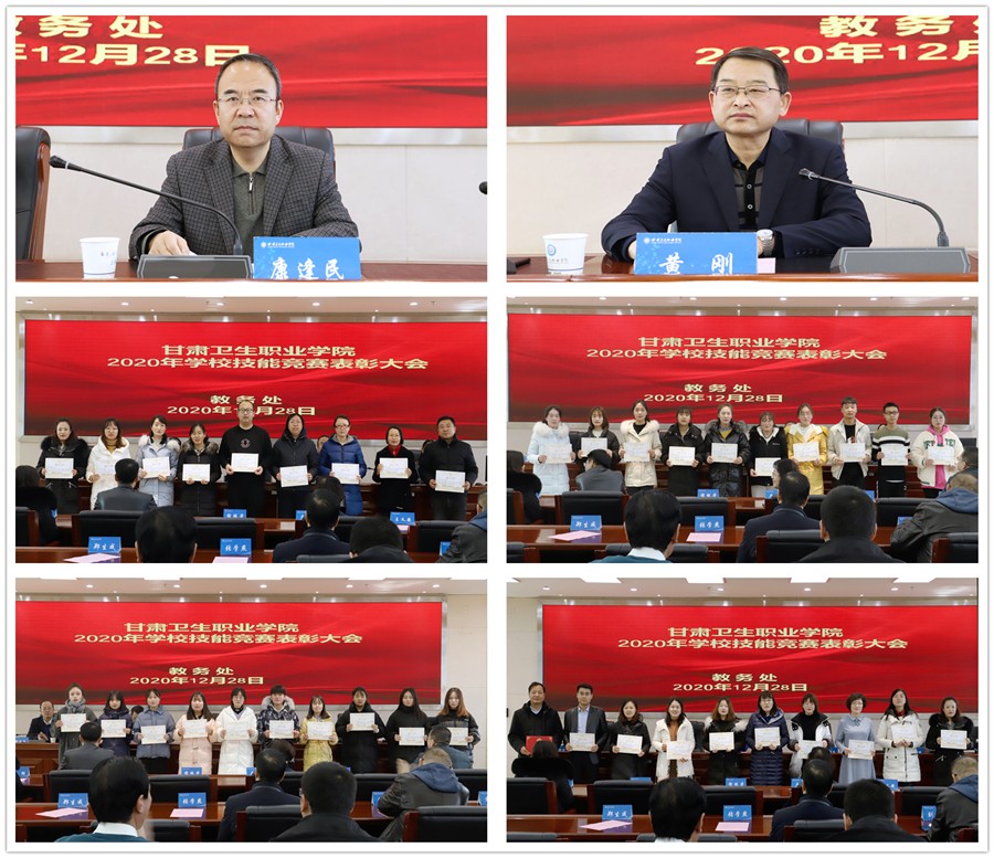 2020年,由教务处牵头,各学院分别举办了形式多样的学生专业技能竞赛活动。为了总结此次竞赛活动,表彰各专业技能竞赛中的获奖学生和优秀指导教师,12月28日上午, 2020年学校技能竞赛表彰大会在办公楼八楼会议室召开。校长任晖,校领导康逢民、黄刚,教务处、学生工作处等有关处室负责人、各二级学院院长、副院长、党总支书记、副书记、优秀指导教师和获奖学生代表共100余人参加了总结表彰大会。大会由校领导黄刚主持。