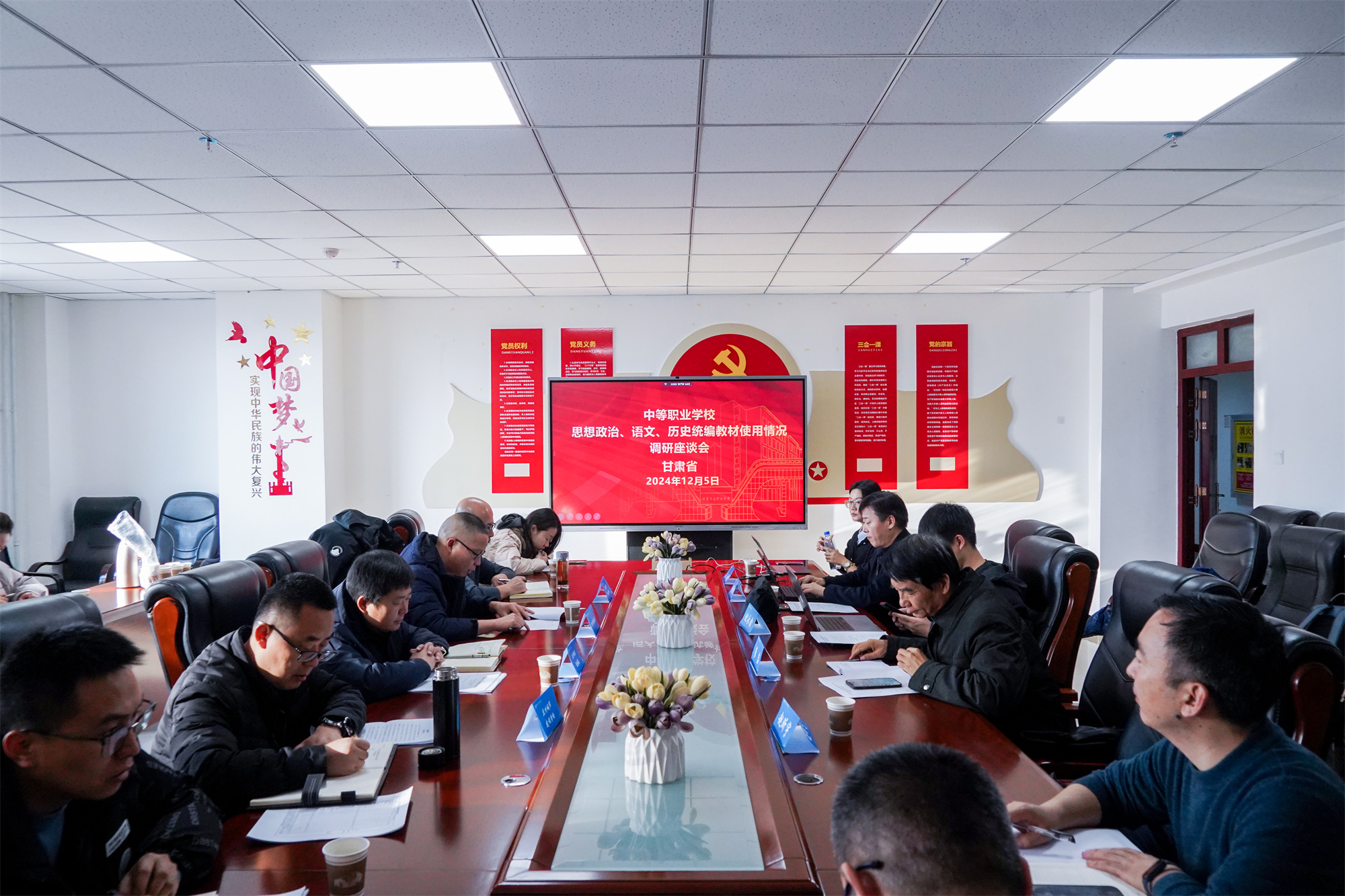 在办公楼315 会议室,调研组专家分别开展了面向教育行政部门工作人员的座谈会和面向职业院校教材管理人员的座谈会。学校党委副书记毕效武对韩江萍主任及赵昕宇副处长一行表示热烈欢迎,兰州资源环境职业技术大学、天游8线路检测中心、甘肃财贸职业技术学院、兰州现代职业技术学院教材管理负责人在会上就国家规划教材的管理、指导、选用、参编、监测、舆情、意见及建议等方面进行了汇报。在办公楼415会议室同期召开了中等职业学校思想政治、语文、历史统编教材使用情况调研座谈会,兰州市教育局、兰州新区教体局、兰州市卫生学校、兰州市城市建设学校教材管理负责人参加了座谈。