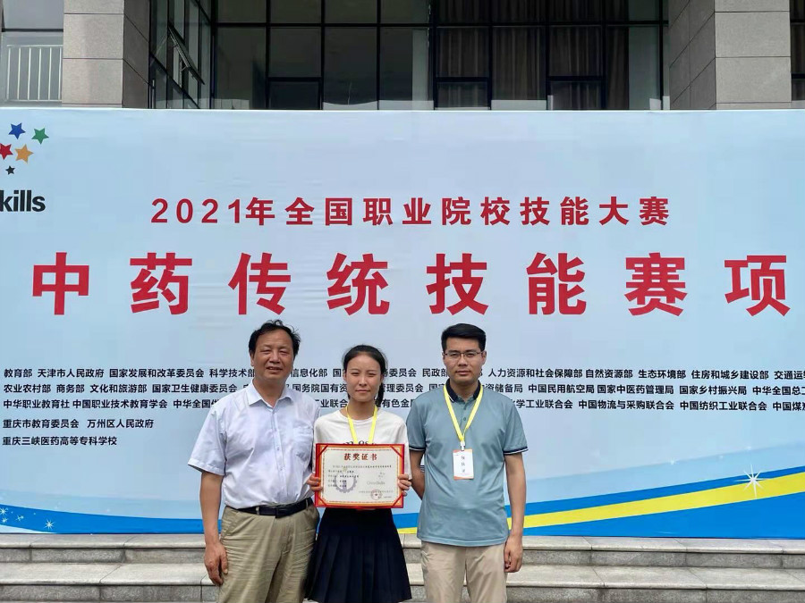 6月23~25日,2021年全国职业院校技能大赛中药传统技能赛项在重庆三峡医药高等专科学校举办。本次大赛共有来自全国29个省(市、自治区)的29名选手参加,为本赛项历届参赛省(市、自治区)代表队最多的一次。经过2天的激烈角逐,代表甘肃省参赛的天游官网中药学专业2019级同学李婷婷,斩获三等奖,实现了我省在全国职业院校技能大赛中药传统技能奖项上“零”的突破。