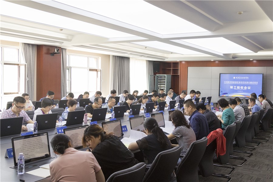 验收会议在学校办公楼三楼无纸化会议室召开,会议由建设项目综合办公室主任、国有资产管理处处长张常俊主持,兰州大学工业与民用建筑专业高级工程师田俊,信息化及应用系统专业教授、博士生导师刘勇,兰州理工大学国家注册监理工程师郎禄梅,兰州交通大学设计研究院有限公司国家一级注册建筑师张建军,国家二级注册建筑师杨磊作为验收专家参加验收,学校标准化建设项目领导小组组长、校长任晖,学校标准化建设项目领导小组副组长黄刚和高博两位副校长出席会议,建设项目综合办公室、建设项目纪检监察组、建设项目资金保障监管组、学校办公室、财务处、国有资产管理处、各子项目负责人及各参建单位的领导和代表60余人参加了验收会议。