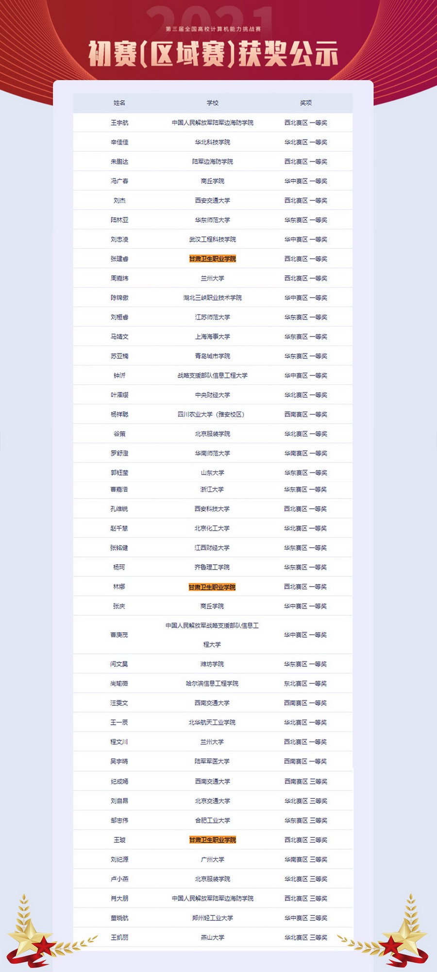 公共基础学院理科教研室积极组织筹备,制定了完善的参赛培训方案,通过校本技能竞赛选拔优秀学生,集中优质资源重点培养辅导。2021年第三届全国高校计算机能力挑战赛吸引了来自全国各地1400多所高校的学生,学院选送的3名选手参加了Office高级应用赛项,经过与9000多名学生激烈的角逐,3名选手在西北区域赛中均脱颖而出,取得了优异的成绩并成功晋级国赛,其中张建睿获得西北赛区一等奖(指导教师:刘丰源),林娜获得西北赛区一等奖(指导教师:卓晓华),王璇获得西北赛区三等奖(指导教师:王丽雅),实现了学校计算机类省级技能比赛新的突破。