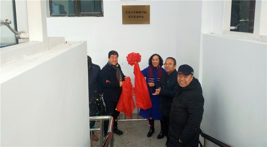 最后,姜德民书记和任晖校长为老年活动中心进行了揭牌。