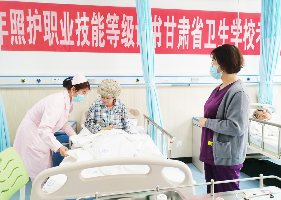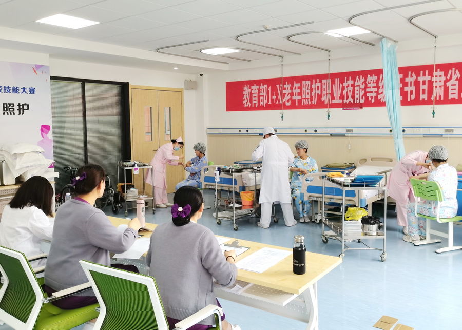 学校2021年通过审批成为老年照护职业技能等级证书考核站点,开展培训及考试工作。5月21日,2022年“1+X”老年照护职业技能等级证书(中级)考试在天游官网顺利举行。本次考试由中国社会福利与养老服务协会、北京中福长者文化科技有限公司组织,甘肃考评站对考核站点组织实施考试进行全程督导检查。