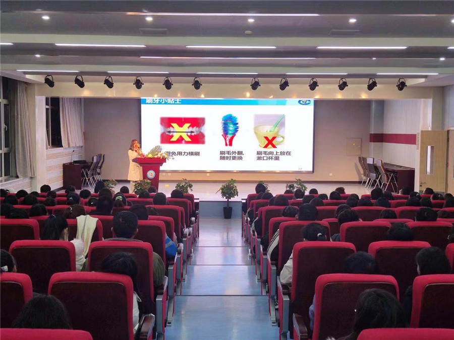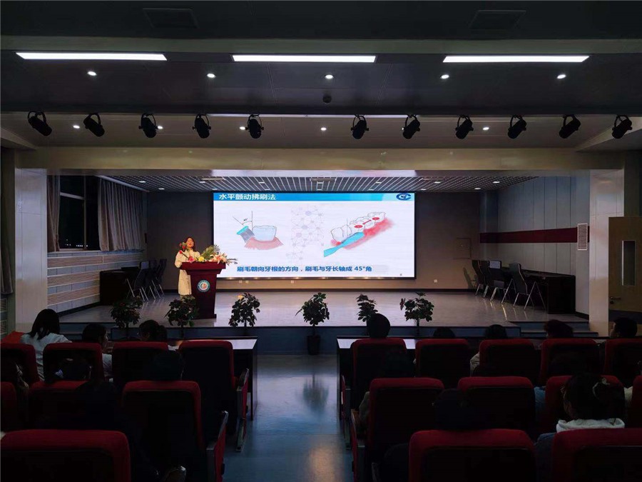 启动仪式结束后,同学们进行了第一次宣讲活动,由口腔医学系学生王静、何琳娜、方玉、李一静依次上台进行口腔科普知识宣讲。同学们分别就口腔常见病,多发病如龋病、牙周病、错牙合畸形的危害与防治展开了精彩的宣讲,宣讲者各显其能,充分发挥自己的宣讲才能,配合丰富的肢体语言,用通俗易懂的语言把学到的专业知识向参会同学进行了讲解。讲解过程中,会场不时发出热烈的掌声和会心的笑声,宣讲受到了同学们的热烈欢迎,取得了良好的宣教效果。宣讲结束后,为鼓励宣讲同学,学院为宣讲同学颁发了宣讲荣誉证书。