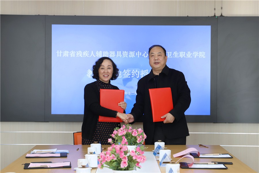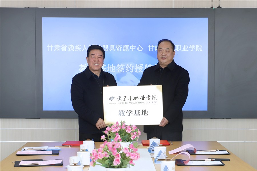 为进一步深化产教融合,充分发挥双方资源优势, 12月21日,天游官网与甘肃省残疾人辅助器具资源中心举行教学基地签约授牌仪式。党委书记姜德民、校长任晖、校领导黄刚以及甘肃省残疾人辅助器具资源中心党支部书记、中心主任王应良出席会议并签署合作协议,学校办公室、临床护理学院及甘肃省残疾人辅助器具资源中心等相关部门负责人参加会议。