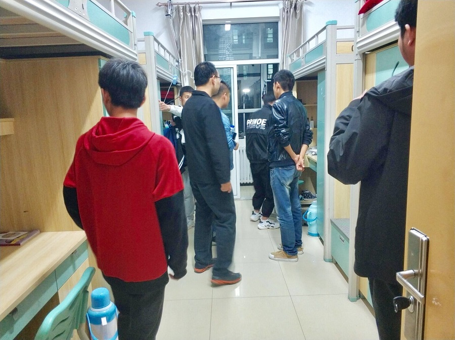 杨频书记带领大家对宿舍卫生、用电等进行了细致的检查。检查中未发现管制刀具、大功率电器等违规物品,但发现个别宿舍卫生情况较差、被褥未叠放整齐等现象,各位老师耐心劝说,学生们表示会按要求进行整改。同时,各位老师对国庆期间在校学生和离校学生的安全问题进行了叮嘱。