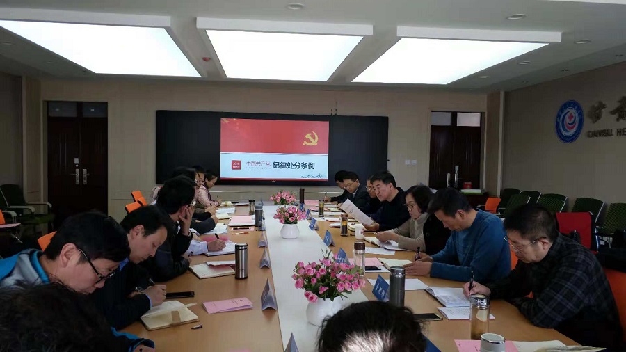 会议首先传达了省教育厅关于印发《关于在全省教育系统专业人才中深入开展“弘扬爱国奋斗精神、建功立业新时代”活动实施方案》的通知(甘教人〔2018〕28号)、中共甘肃省委办公厅关于学习宣传贯彻执行《中国共产党纪律处分条例》的通知(甘办发电〔2018〕155号)和省教育厅关于抓紧推进2018年党员发展工作的通知,并对相关工作作了安排。