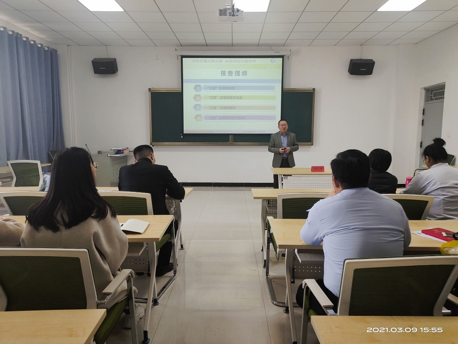 为积极贯彻落实《国家职业教育改革实施方案》,推进“双高”校建设,加快“提质培优”步伐。3月9日,医学技术学院举行了“三教”改革论坛第五讲,学院院长张志钢作了题为《准确把握“三教”改革,务实推进课堂革命》的讲座。学院全体教师参加了讲座,讲座由学院副院长张春雨主持。