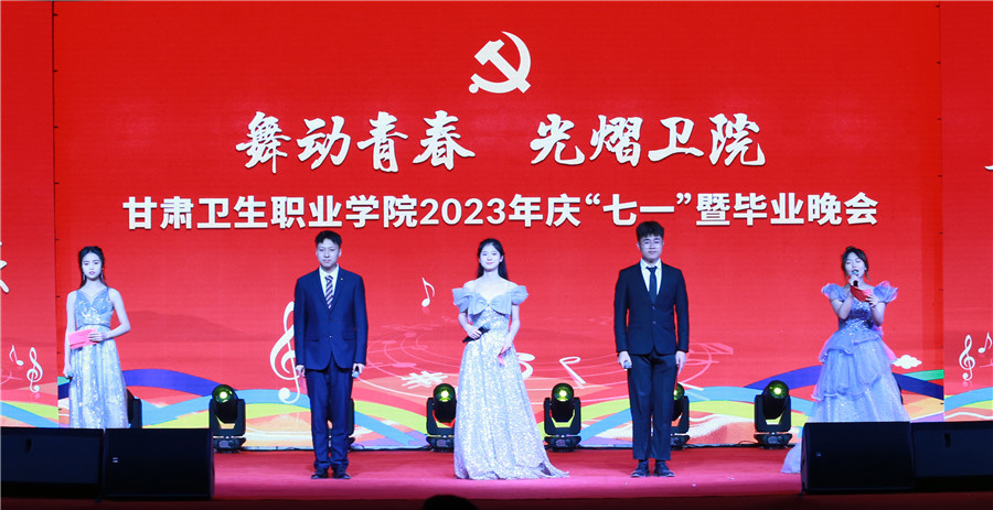 为热烈庆祝中国共产党成立102周年,欢送2023届学生毕业,6月20日晚,学校在田径场举行了“舞动青春 光熠卫院”2023年庆“七一”暨毕业晚会。学校领导、副处级干部、各处室(部门)负责人、学院负责人、毕业班辅导员(班主任)、毕业生代表和全体在校生观看了演出。