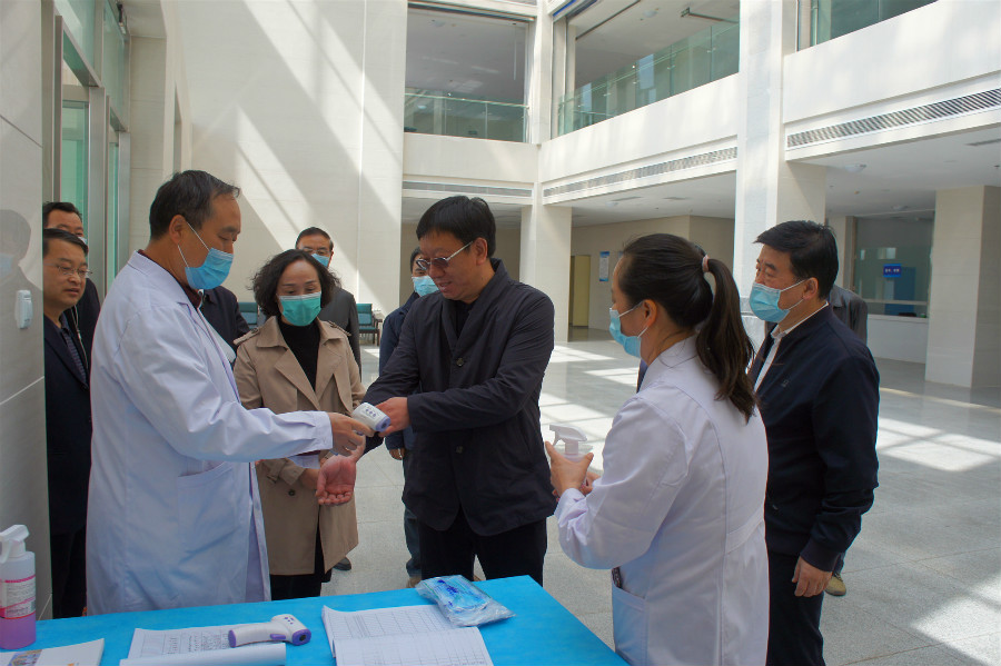 雷江红一行首先实地察看了学校附属医院门诊部、门卫、食堂等重点部位的疫情防控工作,随后来到学校办公楼715会议室,查阅了学校疫情防控、校园安全、扶贫帮扶及开学准备工作等方面的文件材料,听取了校长任晖关于学校疫情防控、校园安全、扶贫帮扶及开学准备工作的汇报,汇报会由学校党委书记姜德民主持。