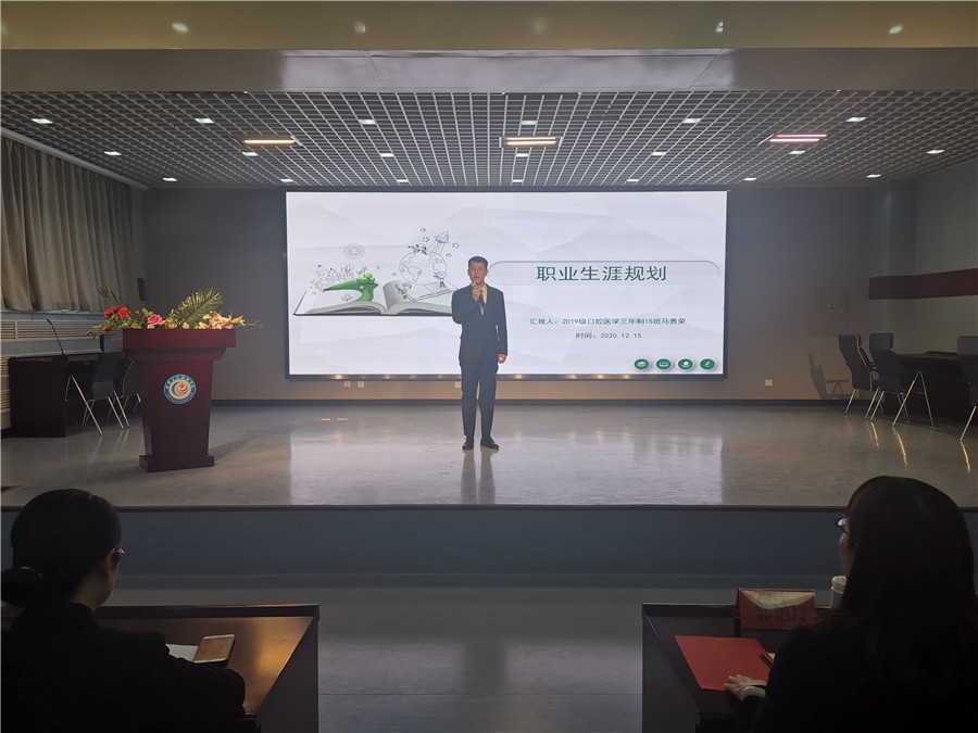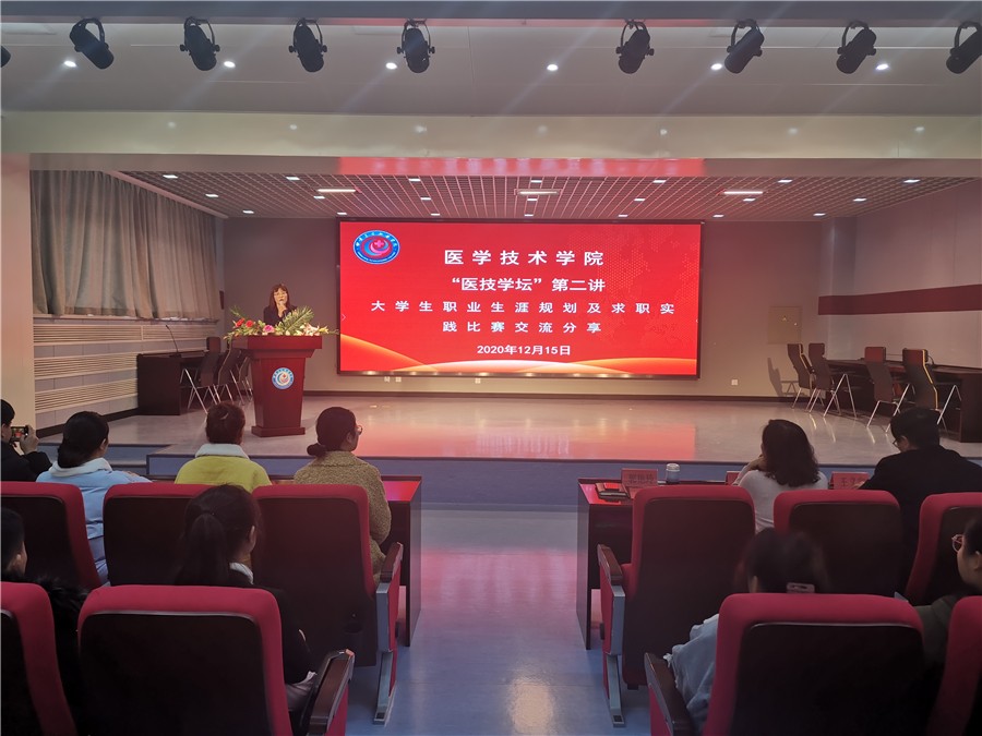 为进一步调动学生关注和参与就业工作的积极性和主动性,推动学院就业工作顺利有序展开,12月15日下午,医学技术学院在临床医学系报告厅举行了主题为“参赛归来说心得,分享交流促就业”的医学技术学院“医技学坛”第二次交流报告会。实习就业处副处长郑雪、学院领导、部分辅导员及近300名各专业学生参加。活动由学院党总支副书记郭艳玲主持。