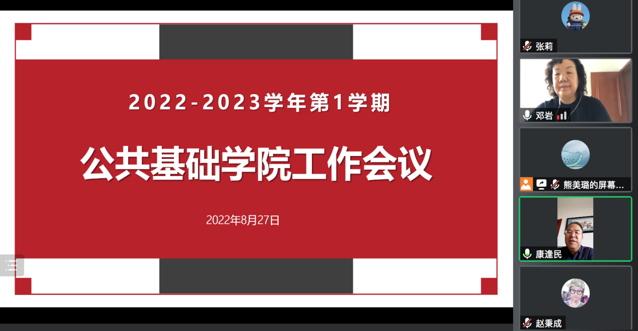 公共基础学院于2022年8月27日下午15:00召开了2022-2023学年第1学期工作会议,康逢民副校长和我院全体专职教师参加会议,会议由学院党总支书记邓岩主持。