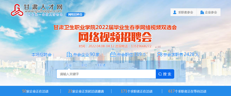 百日冲刺季,云上助力时——学校举办2022年春季网络双选会和“直播带岗”专场招聘会发布时间:2022-04-12 -